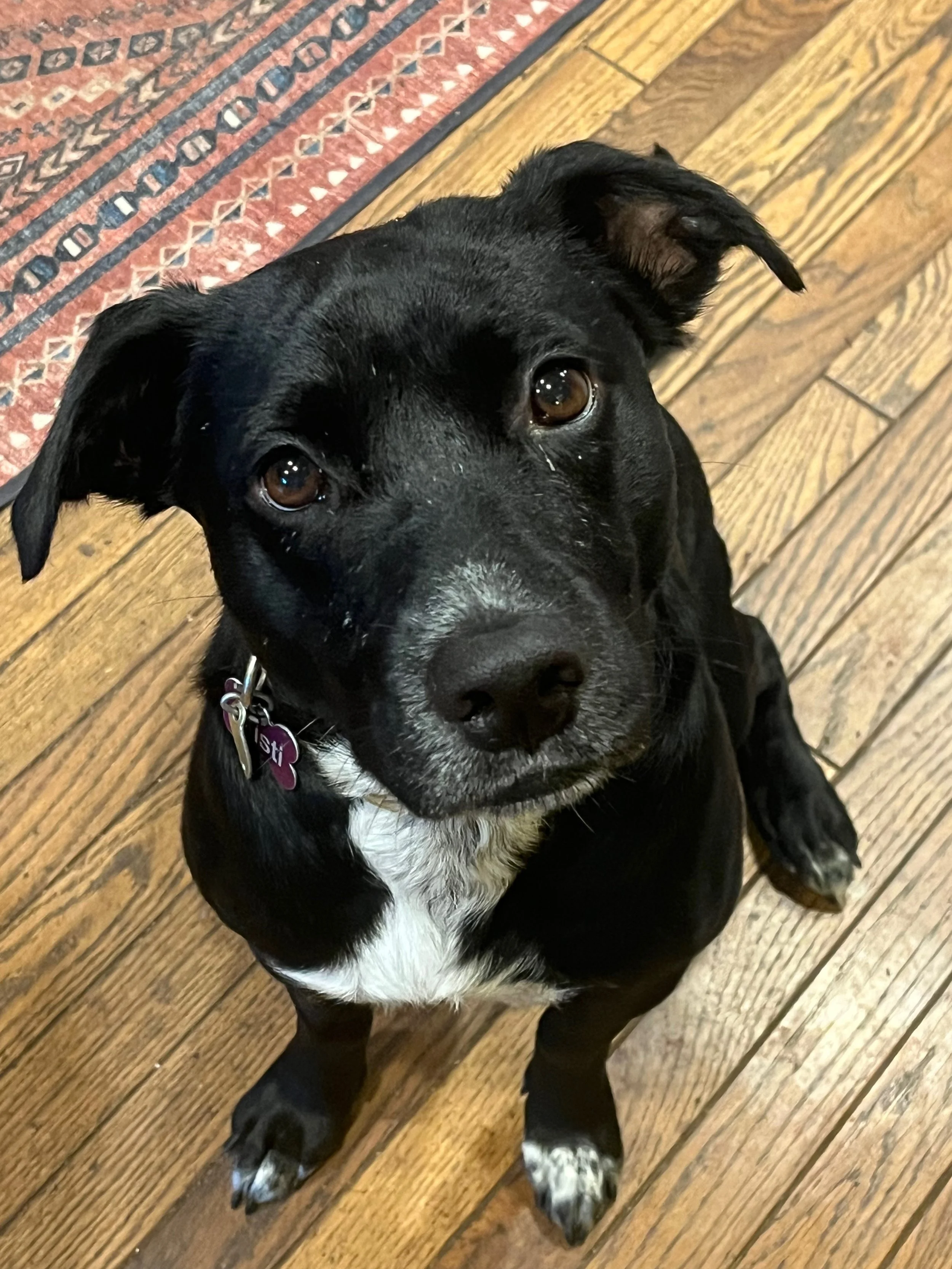 This is Misti. Misti came to us in 2024 after being rescued by Eleventh Hour Rescue from a bad situation in Georgia. She’s pretty sure New Jersey is really heaven and couldn’t be happier that she made it here. Misti is VERY friendly, and she loves Honey House customers. She WILL jump on you, but it’s for hugs and scritches, and, because so many people pet her when she does it, we’ve given up trying to teach her not to jump. If you’re not comfortable with dogs, we’re sorry about that, but just know that Misti is as gentle as a lamb. (And she loves belly rubs!)